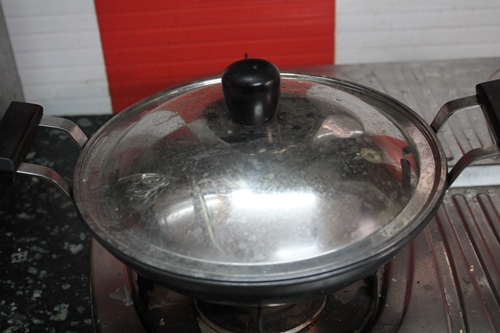 Cover the kadai with a lid and let it steam cook for 10 mins till the brinjal is done.