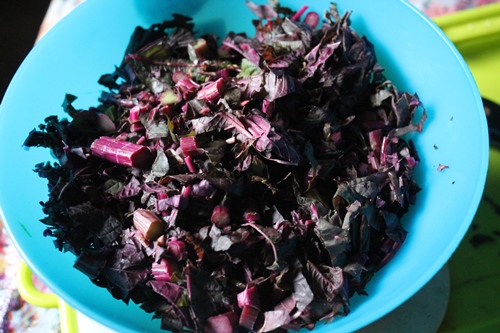 | I used a small bunch of red amaranth leaves |