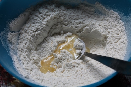 Add in 2 tblspn of oil and rub it with the flour so it is well mixed.